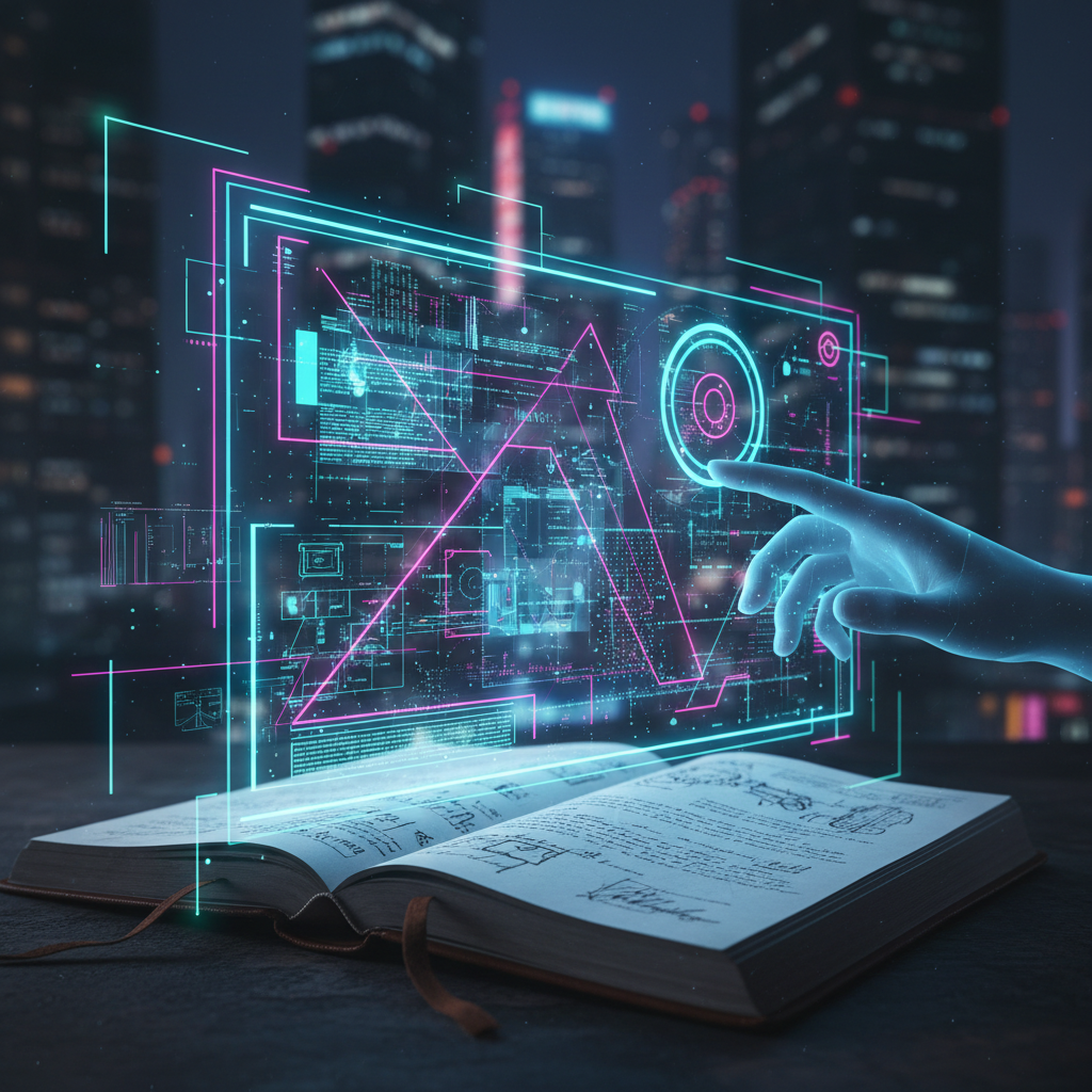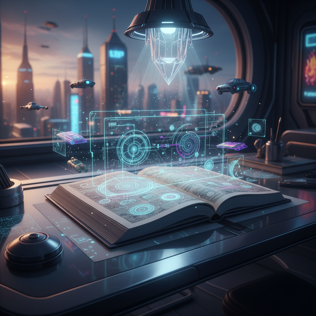 Open gratitude journal filled with futuristic doodles, capturing possibility and hope.