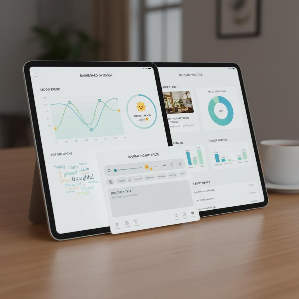 Alt: Digital mood analytics dashboard showing insights from a journaling app.