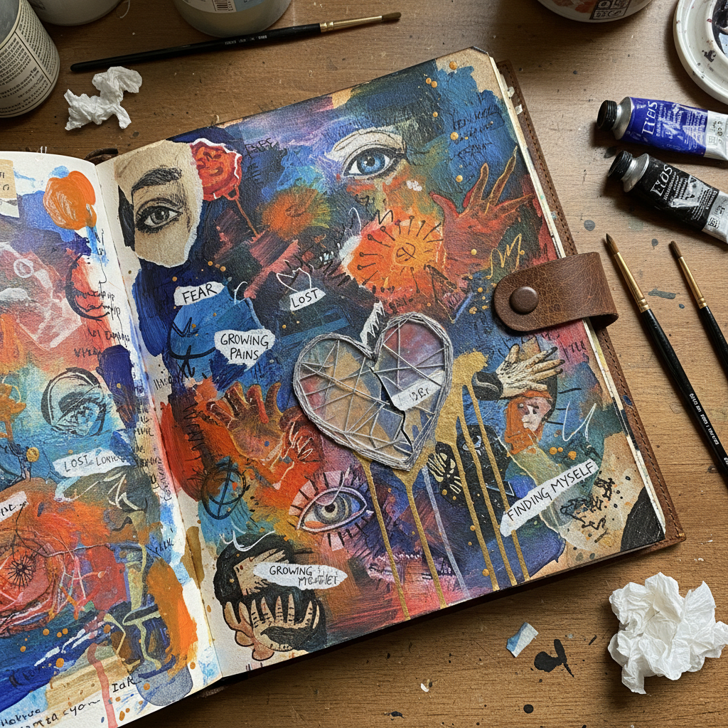 - Art journals: Layer paint, photos, and handwritten text for visual processing.