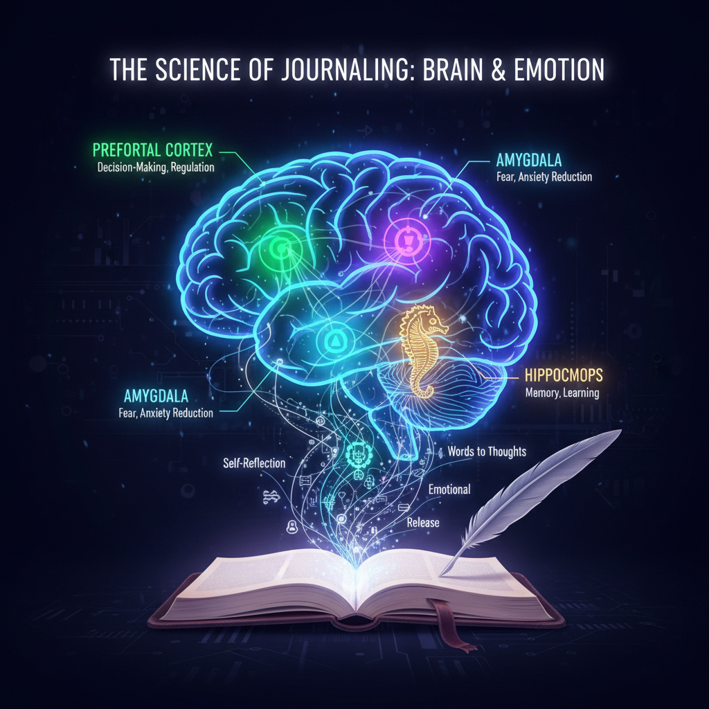 Journaling isn’t just a feel-good ritual: it’s a biological disruptor. Neuroscience now maps the benefits of expressive writing on the brain’s processing centers. According to a meta-analysis in the journal Advances in Psychiatric Treatment (2023), journaling activates the prefrontal cortex—responsible for executive function and emotional regulation—while reducing amygdala-driven stress responses.