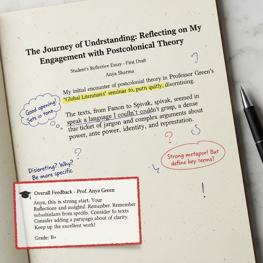 Picture this: a university student submits a reflective essay after a semester-long group project. The essay opens with a vivid description of group dynamics, confesses to initial frustration with team roles, and admits fearing confrontation. Annotated comments highlight strengths—honest self-disclosure, use of Kolb’s model, and actionable plans for future teamwork.